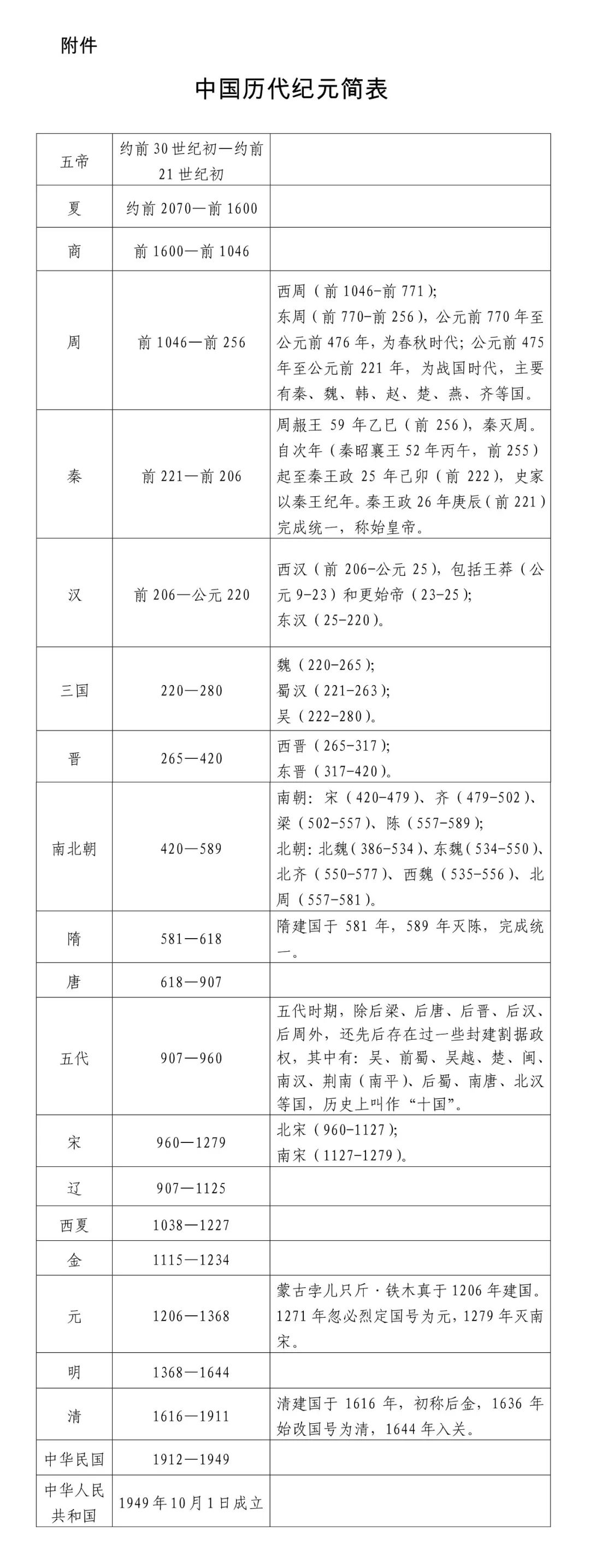附件:中國歷代紀(jì)元簡(jiǎn)表