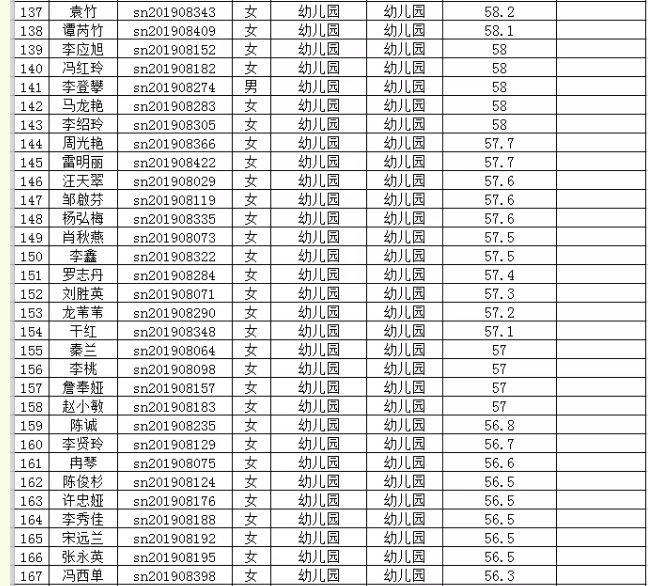 2019年思南縣特崗教師第二階段筆試成績(jī)統(tǒng)計(jì)表