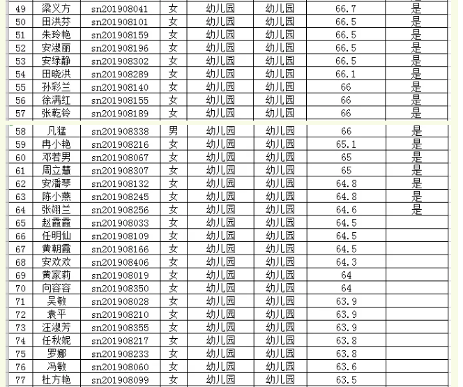 根據(jù)《思南縣2019年農(nóng)村義務(wù)教育階段學(xué)校教師特設(shè)崗位計(jì)劃招聘實(shí)施方案》,思南縣2019年特崗教師招聘(第二階段)筆試已于2019年8月3日進(jìn)行,現(xiàn)將筆試成績(jī)和進(jìn)入面試人員名單予以公示。請(qǐng)進(jìn)入面試人員于2019年8月8日上午8點(diǎn)前憑本人有效身份證和筆試準(zhǔn)考證到思南中學(xué)初中部(思南中學(xué)老校區(qū))參加面試。(統(tǒng)一從學(xué)校后校門進(jìn)入)。、