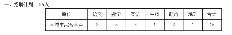 禹城市綜合高中是一所國(guó)有公辦高中,全額撥款事業(yè)單位,省級(jí)規(guī)范化學(xué) 校,省級(jí)花園式單位,省級(jí)衛(wèi)生先進(jìn)單位。經(jīng)禹城市委、市政府批準(zhǔn),2020 年面 向全國(guó)招聘高中教師 15 人,聘用教師列入市人事、財(cái)政編制。