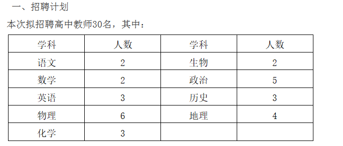 經(jīng)縣委、縣政府研究,我縣決定面向社會(huì)公開(kāi)招聘30名高中教師。結(jié)合當(dāng)前新型冠狀病毒疫情的嚴(yán)峻形勢(shì),現(xiàn)將招聘事項(xiàng)公告如下: